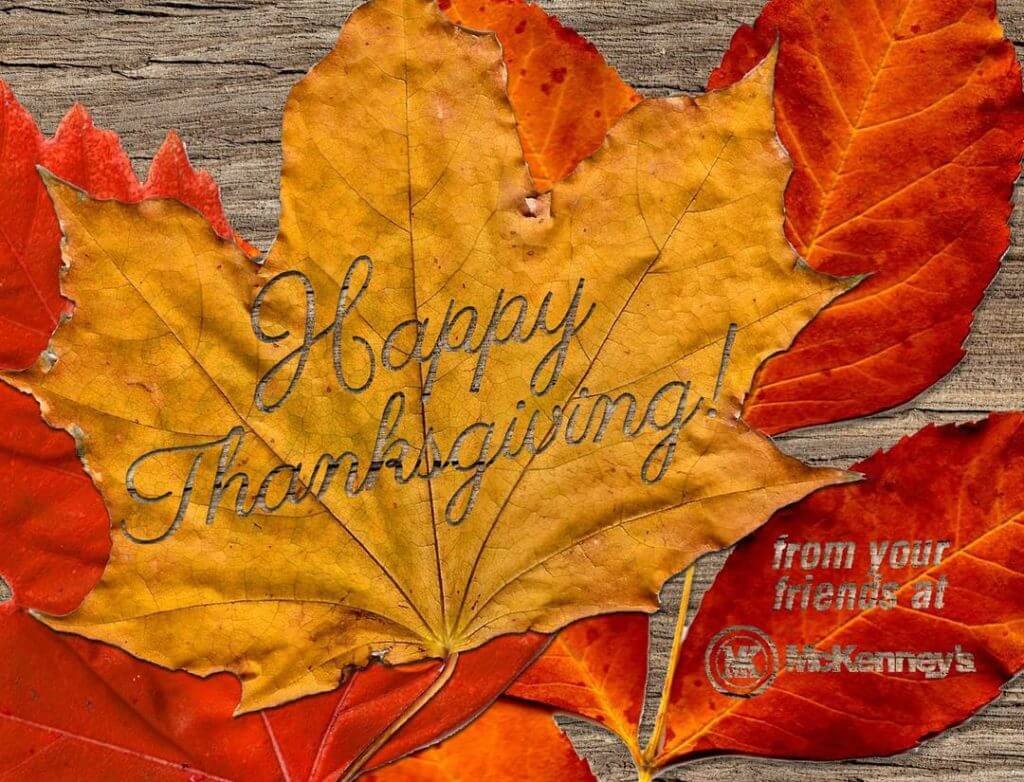 Happy Thanksgiving From McKenney’s! We wish you a Happy Thanksgiving, full of joy and happiness with your family and friends!