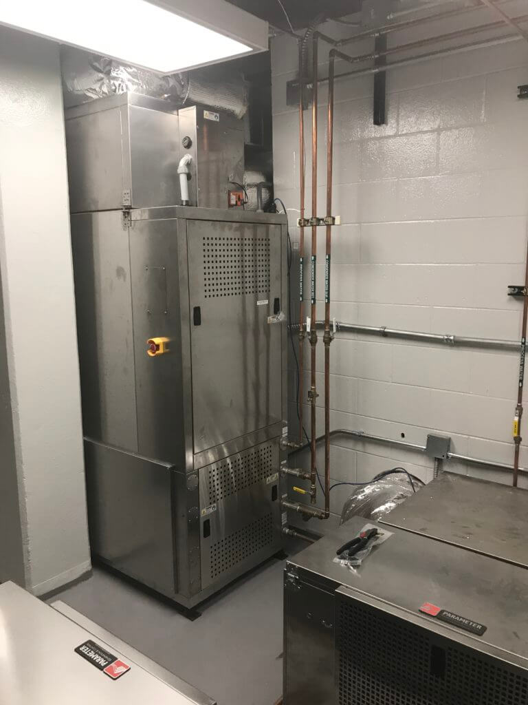 The intended use for the new lab space includes highly sensitive experiments requiring extremely consistent space conditions. The standard equipment used to deliver this type of lab space is typically installed inside of large warehouse spaces or incorporated into the design of the structure of the building; however, this project was slated to be completed within the existing building in an area with very limited square footage.