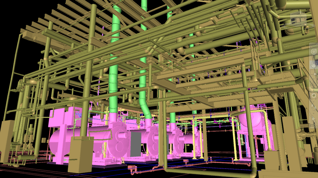 To better execute this plan, McKenney’s utilized leading edge laser scanning technology to develop a virtual as built model of the existing planting prior to beginning construction. Our team used this model to produce a state of the art BIM model of the new plant within the crowded infrastructure of the existing mechanical room. This model allowed the end users to review every aspect of the new plant before construction ensuring all customer needs were being met. This also decreased project cost and schedule impacts by allowing McKenney’s to maximize the use of prefabrication in our in-house fabrication facilities to the greatest extent possible. We are proud of the success that this project team has experienced thus far as construction of the plant is complete, and we are moving into start up. This approach has been leveraged with a high level of success, and can be applied to numerous other renovations of various building types to meet our customer needs.