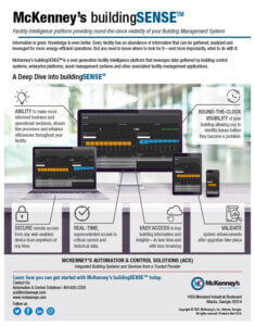 McKenney’s buildingSENSE™ is a next-generation facility intelligence platform that leverages data gathered by building control systems, enterprise platforms, asset management systems, and other associated facility management applications.